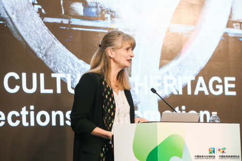 奥林匹克文化与遗产基金会奥运遗产部主任Yasmin Meichtry在主题演讲中,首先介绍了奥林匹克文化遗产基金会和国际奥委会的遗产藏品,并着重分享了如何利用线下渠道和线上的数字平台去展示和推广藏品,让藏品更好的发挥价值。Yasmin Meichtry表示,中国对于促进奥林匹克运动做出了巨大成就和贡献,奥林匹克文化就在于用体育和文化连接世界。