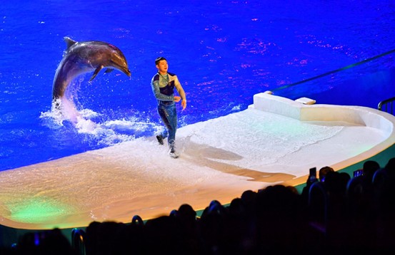 还有来过海世界的小伙伴都赞不绝口的海豚剧场,到底有多大的魅力?十来米的高空跳跃旋转,与教练配合:托举、滑行都不在话下!剧场的演出方式比较特别,光、音乐,氛围感很强,能让人融入到这种沉浸式的表演中。展海豚剧场的场次比较多,所以朋友们不用担心会错过呢!