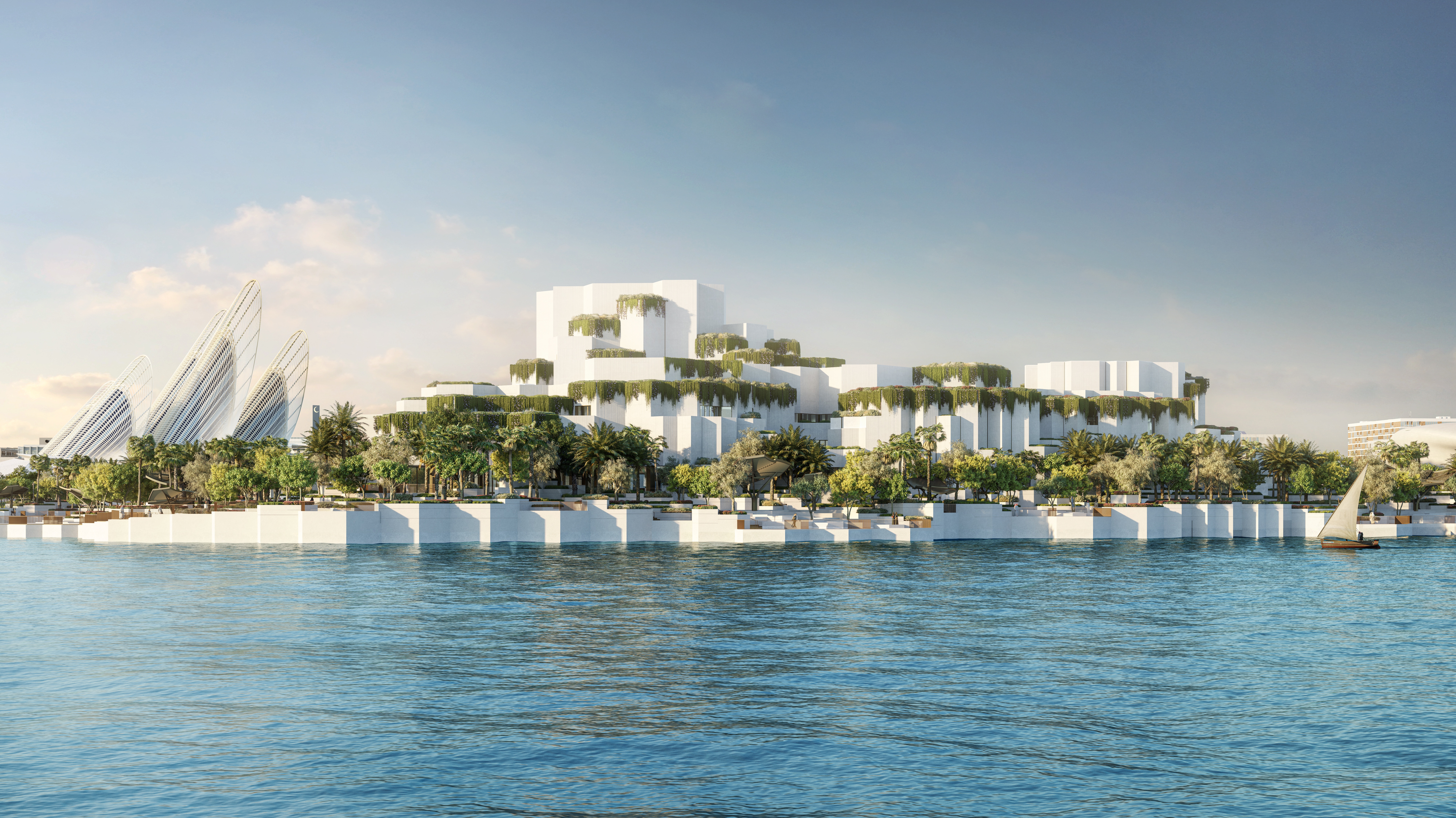 博物馆的建筑设计出自著名建筑事务所Mecanoo之手,它仿佛从萨迪亚特岛的土地中自然生长而出,与周围景观融为一体。其建筑轮廓仿若天然岩层,与博物馆的使命相呼应,即联结人类与自然世界,激励新一代不断追问、探索,共同参与塑造更可持续的未来。